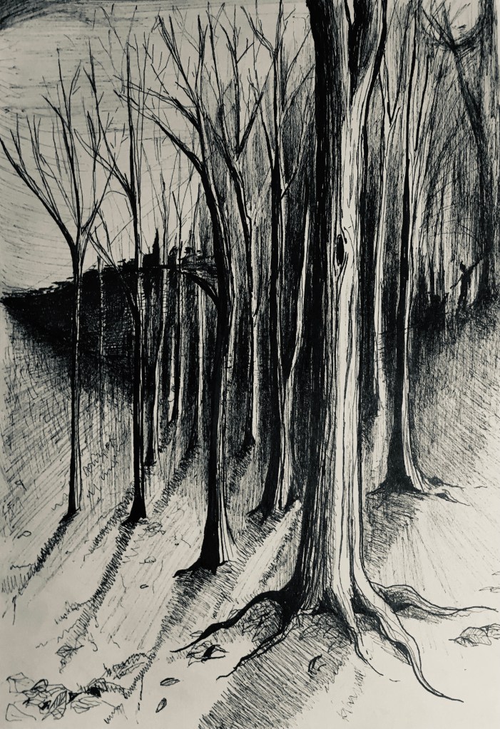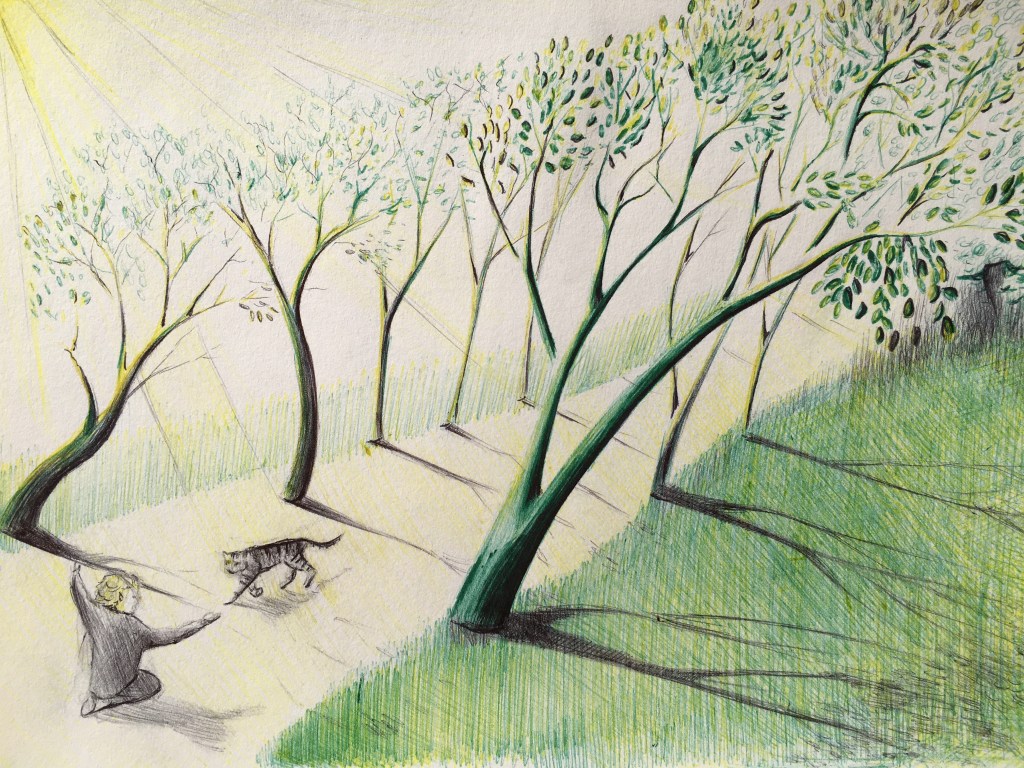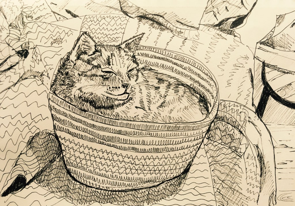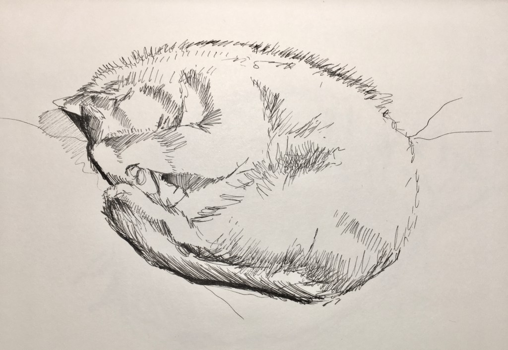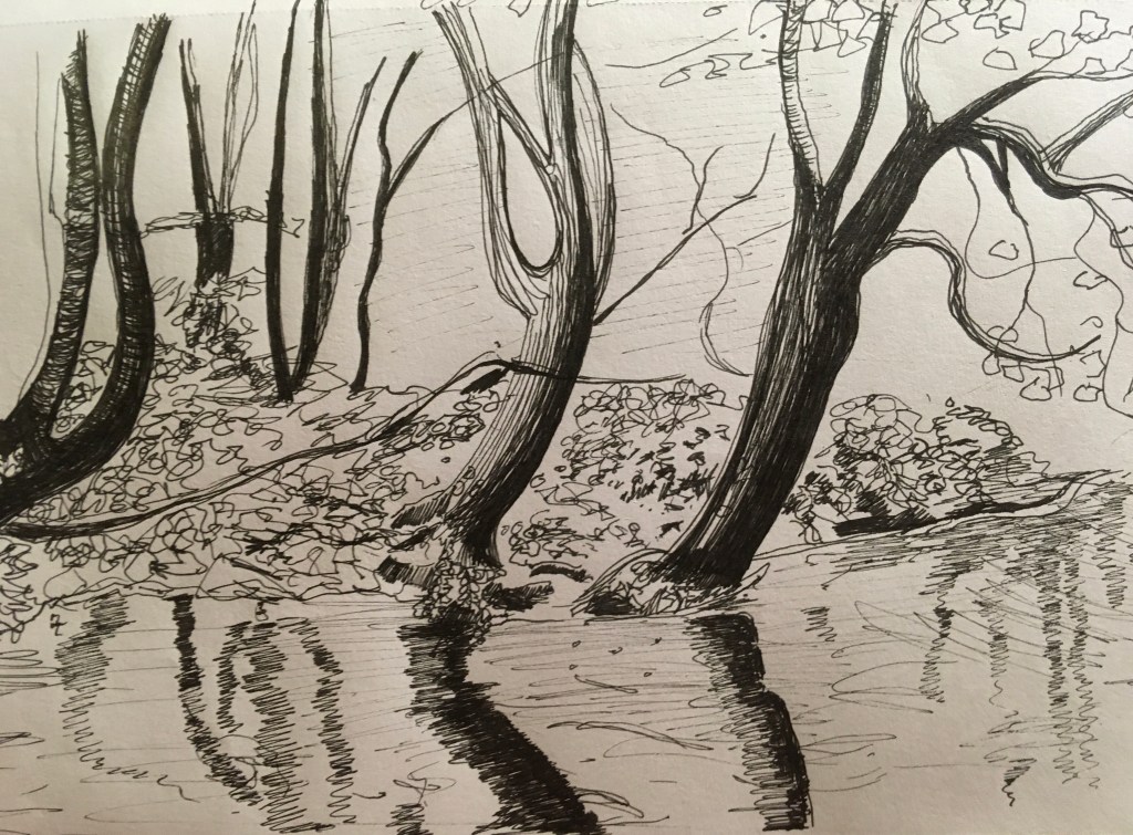 Morning light in wintry woods. Pencil and black pen. Lake in winter. Pencil. River in black pen.Fifty trees to celebrate a friend’s fiftieth, and her family’s move to England. In pencil. Lakeside tree in winter, in black pen. Lakeside tree in autumn, in ink pencils and black pen. Biro drawing celebrating our wandering cat’s return. Autumn in pen and pencil.The owl! Stippling done in black pen. Imaginary tree. Stippling done in black pen.Local pine. Stippling done in black pen.Quick sketch of imaginary trees.Local park sketched from imagination, in pen.Colour pencils.Felt tips, biro then Procreate on iPad. Drawn in Procreate on iPad.Spring in watercolour pens.Watercolour sketch as rain swept in. Looking across to Wales from England.Watercolour swimmer. Imaginary.Our garden reimagined with no boundaries, in colour pencil. Drawn on iPad Procreate.Drawn on iPad Procreate.Self-portrait drawn in Procreate on iPad.Drawn in Procreate on iPad.Quick pencil sketch.Imaginary character in watercolour.Quick sketch in biro.Happy cat in a basket. Black pen.Cat sketch in black pen.Cat sketch in black pen.Gouache cat sketch.Pencil sketch. One cat that kept moving. Quick sketch in biro.A cat’s world. Drawn in pen then in Procreate on iPad.Cat! Drawn in Procreate on iPad.Rainbows in lockdown. Drawn in Procreate on iPad.Butterfly photographed on Devon sand dunes then drawn over in Procreate on iPad.Museum trip. Drawn in Procreate on iPad.Collage, then drawn over in Procreate on iPad.Wintry mountain. In pencil.Gouache etc. An imaginary scene painted for my brother who likes thinking on mountains. Explorers on my piano! 🙂Imaginary beach. Watercolour pencils and pen. Coastal sketch in colour pencil.Collage for fun. Hampstead Heath, River Thames, Britain, Regent’s Park. 🙂