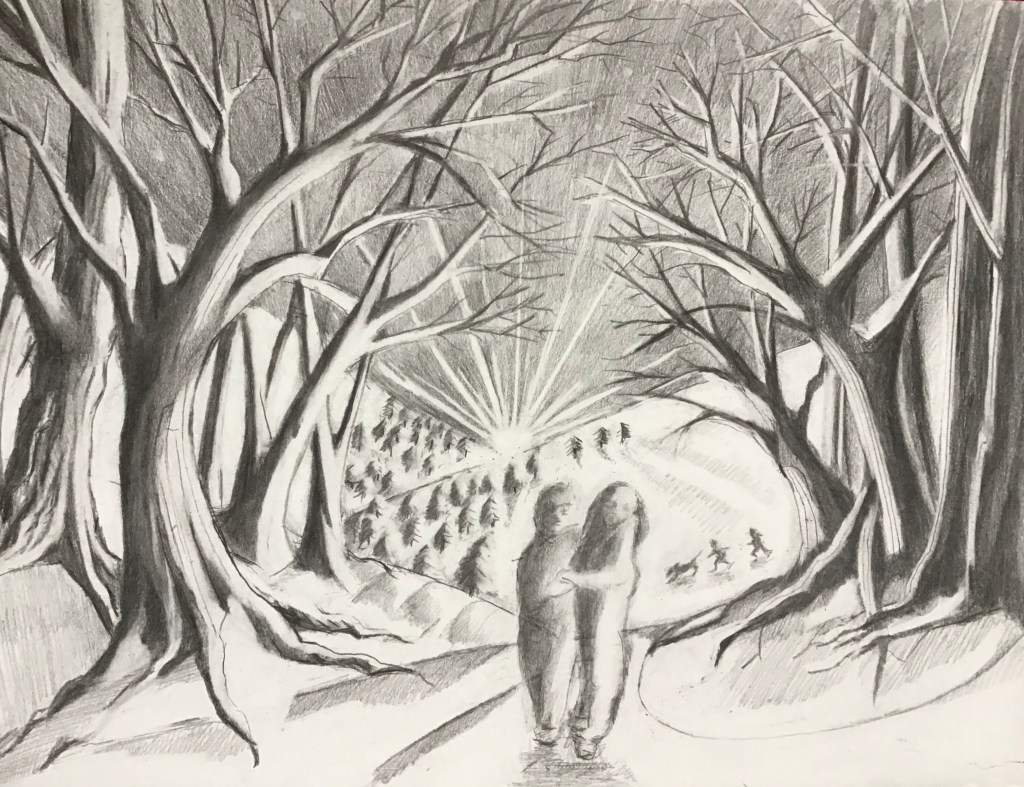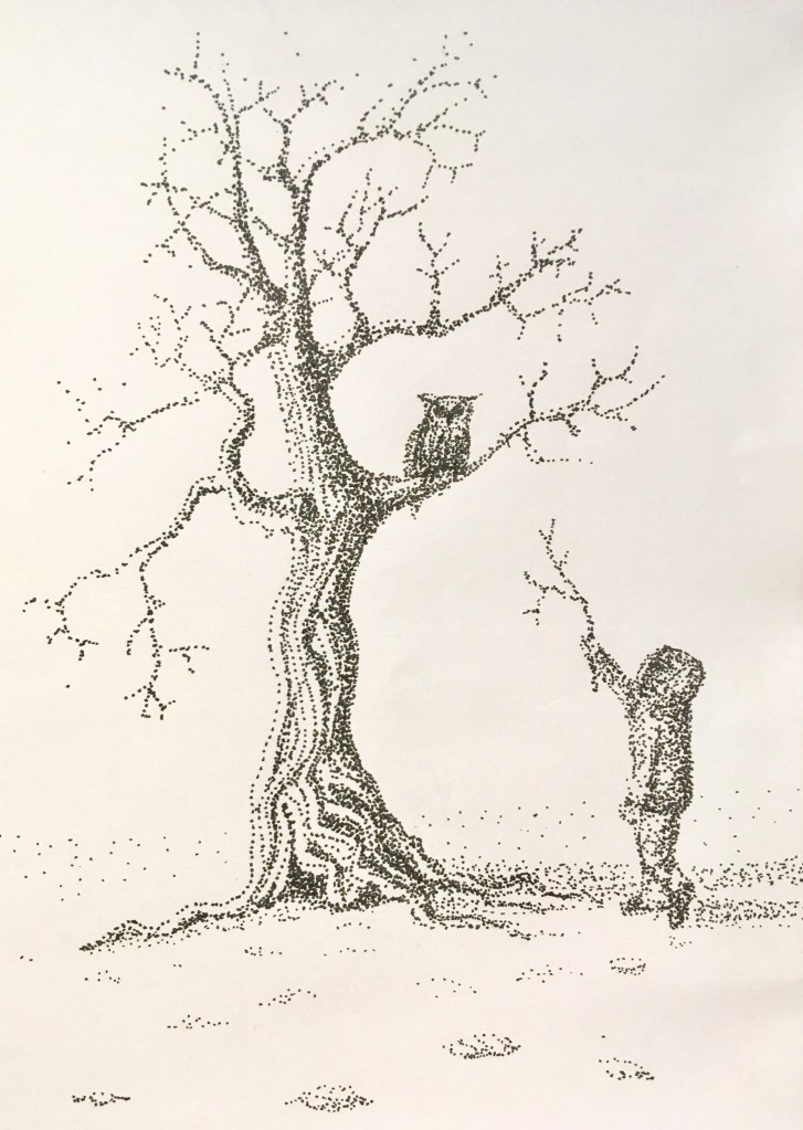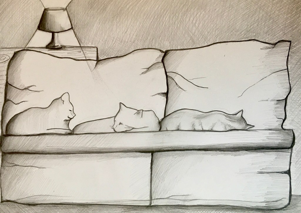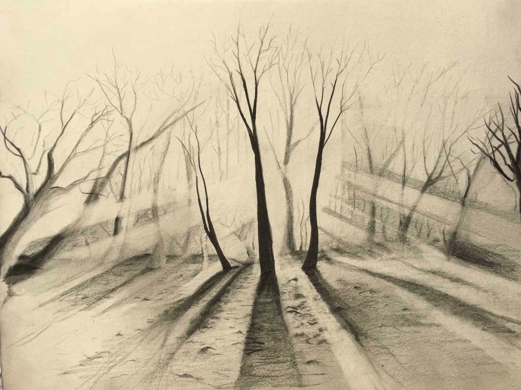 Morning light in wintry woods. Pencil and black pen. Lake in winter. Pencil. River in black pen.Fifty trees to celebrate a friend’s fiftieth, and her family’s move to England. In pencil. Lakeside tree in winter, in black pen. Lakeside tree in autumn, in ink pencils and black pen. Biro drawing celebrating our wandering cat’s return. Autumn in pen and pencil.The owl! Stippling done in black pen. Imaginary tree. Stippling done in black pen.Local pine. Stippling done in black pen.Quick sketch of imaginary trees.Local park sketched from imagination, in pen.Colour pencils.Felt tips, biro then Procreate on iPad. Drawn in Procreate on iPad.Spring in watercolour pens.Watercolour sketch as rain swept in. Looking across to Wales from England.Watercolour swimmer. Imaginary.Our garden reimagined with no boundaries, in colour pencil. Drawn on iPad Procreate.Drawn on iPad Procreate.Self-portrait drawn in Procreate on iPad.Drawn in Procreate on iPad.Quick pencil sketch.Imaginary character in watercolour.Quick sketch in biro.Happy cat in a basket. Black pen.Cat sketch in black pen.Cat sketch in black pen.Gouache cat sketch.Pencil sketch. One cat that kept moving. Quick sketch in biro.A cat’s world. Drawn in pen then in Procreate on iPad.Cat! Drawn in Procreate on iPad.Rainbows in lockdown. Drawn in Procreate on iPad.Butterfly photographed on Devon sand dunes then drawn over in Procreate on iPad.Museum trip. Drawn in Procreate on iPad.Collage, then drawn over in Procreate on iPad.Wintry mountain. In pencil.Gouache etc. An imaginary scene painted for my brother who likes thinking on mountains. Explorers on my piano! 🙂Imaginary beach. Watercolour pencils and pen. Coastal sketch in colour pencil.Collage for fun. Hampstead Heath, River Thames, Britain, Regent’s Park. 🙂